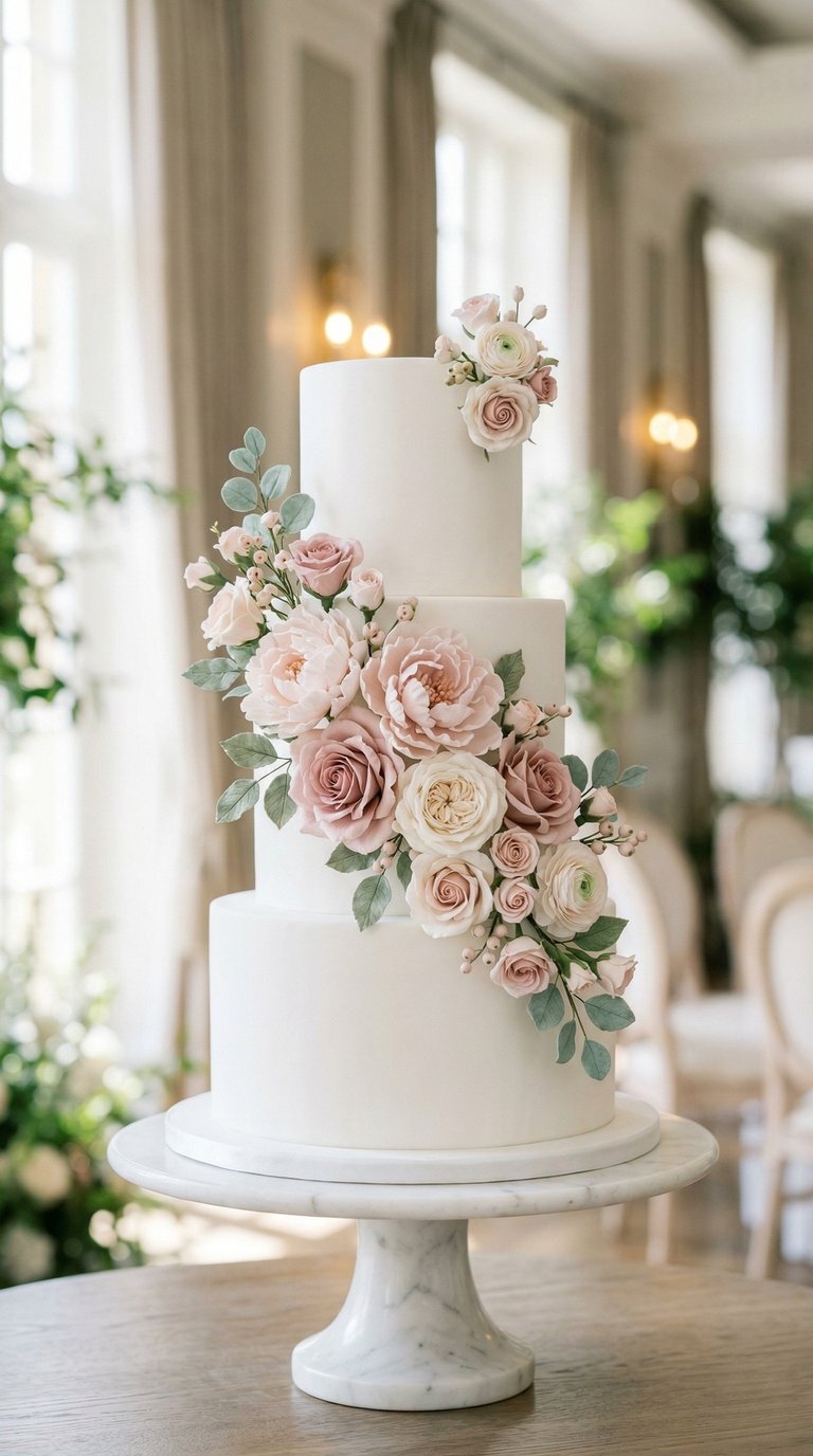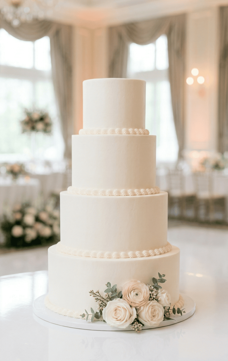 Smooth, pristine, and perfectly piped, offering a timeless aesthetic. Because of its clean and simple foundation, this style provides the ultimate blank canvas, allowing you to easily incorporate colorful fresh flowers, delicate greenery, or even a statement topper that perfectly matches your wedding theme. It is often a more budget-friendly alternative to complex fondant designs, achieving sophisticated elegance through texture alone, such as horizontal ridges, Swiss dots, or smooth spatula strokes, without sacrificing style. Furthermore, guests frequently prefer the traditional taste and creamy, soft texture of buttercream over fondant, ensuring they will actually enjoy eating the slice they are served. If you choose this classic route, work closely with your baker to select a stable buttercream recipe (like Swiss Meringue) that is suitable for your venue’s temperature, ensuring the smooth finish remains flawless throughout the celebration.